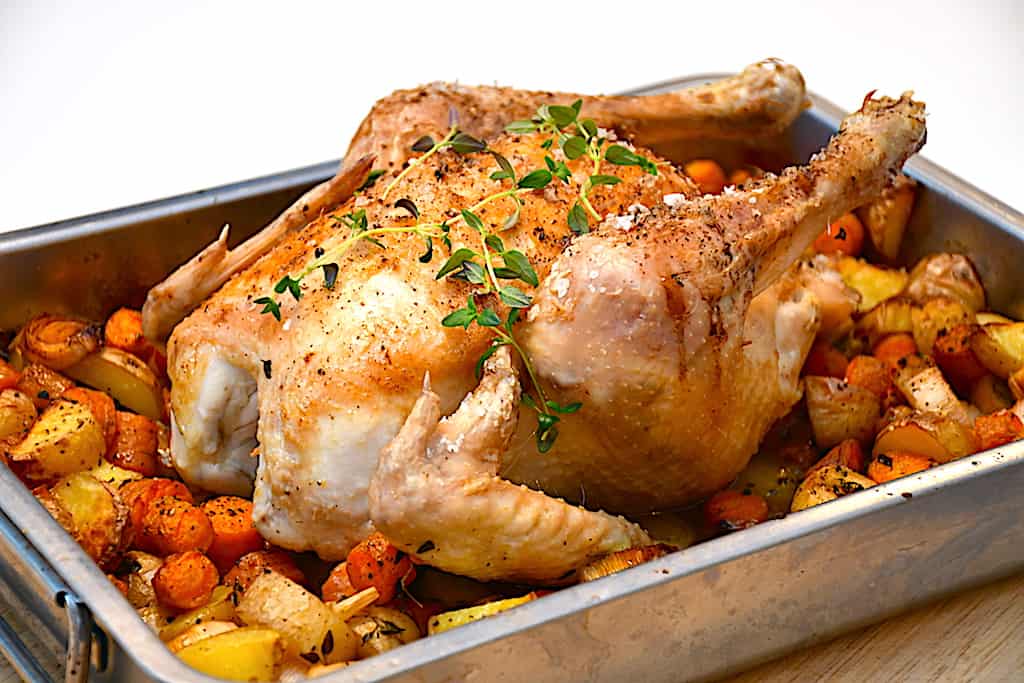 En hel kylling i ovn er et super nemt alternativ til Mortensaften-anden. En god opskrift på velsmagende aftensmad med kylling og grøntsager. Hel kylling i ovn med tilbehør er vel en af de mest populære opskrifter i det danske køkken, og det er da også en super velsmagende ret.